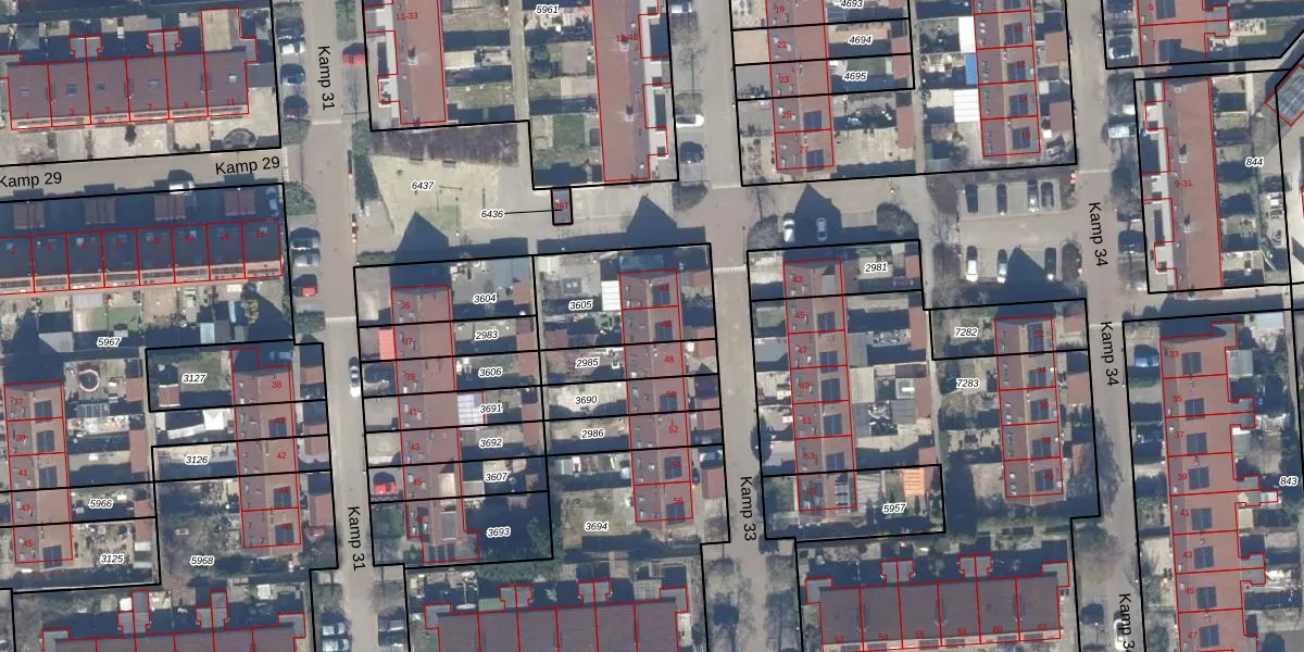 Kamp 33 46 is gelegen op kadastraal perceel LLS00O3605. Deze kadastrale aanduiding is uniek en wordt gebruikt door het Kadaster om eigendomsrechten en andere zakelijke rechten vast te leggen. Het perceel maakt onderdeel uit van de kadastrale gemeente Lelystad.