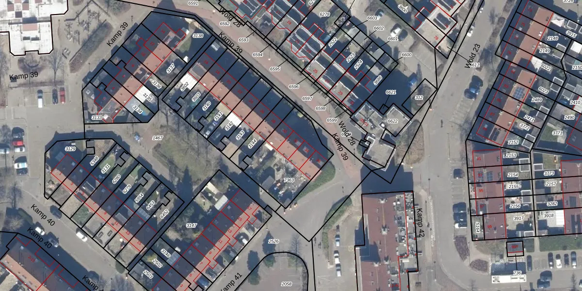 Het perceel waarop Kamp 39 32 staat heeft een oppervlakte van 555 m². Dit is een groot perceel. De perceeloppervlakte wordt geregistreerd door het Kadaster. Gedetailleerde informatie over de maten van dit perceel kunt u vinden in het rapport Kadastrale kaart met maatvoering van Kamp 39 32.
