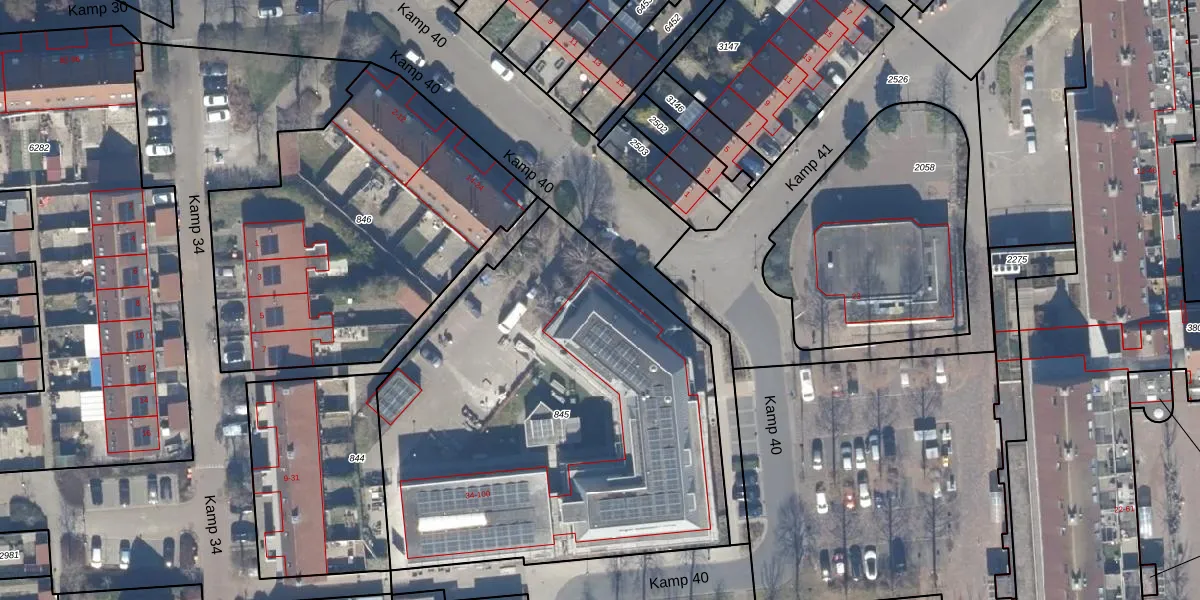 Kamp 40 36 is gelegen op kadastraal perceel LLS00O845. Deze kadastrale aanduiding is uniek en wordt gebruikt door het Kadaster om eigendomsrechten en andere zakelijke rechten vast te leggen. Het perceel maakt onderdeel uit van de kadastrale gemeente Lelystad.