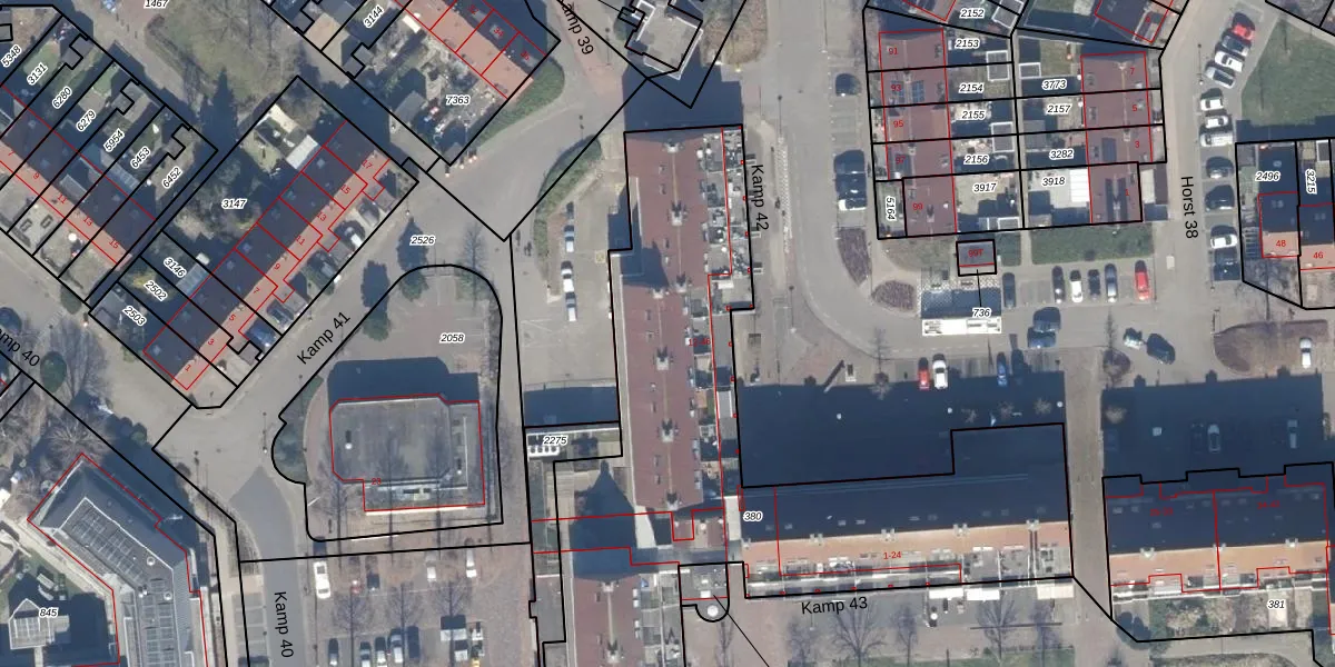 Kamp 42 42 is gelegen op kadastraal perceel LLS00P380. Deze kadastrale aanduiding is uniek en wordt gebruikt door het Kadaster om eigendomsrechten en andere zakelijke rechten vast te leggen. Het perceel maakt onderdeel uit van de kadastrale gemeente Lelystad.