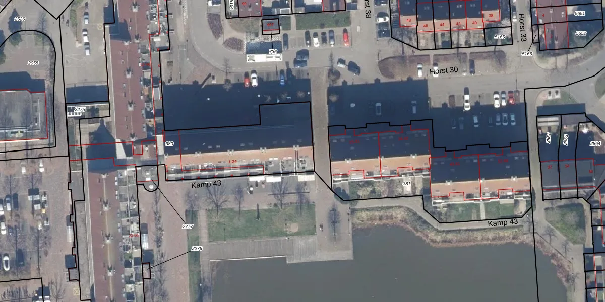 Kamp 43 16 is gelegen op kadastraal perceel LLS00P380. Deze kadastrale aanduiding is uniek en wordt gebruikt door het Kadaster om eigendomsrechten en andere zakelijke rechten vast te leggen. Het perceel maakt onderdeel uit van de kadastrale gemeente Lelystad.