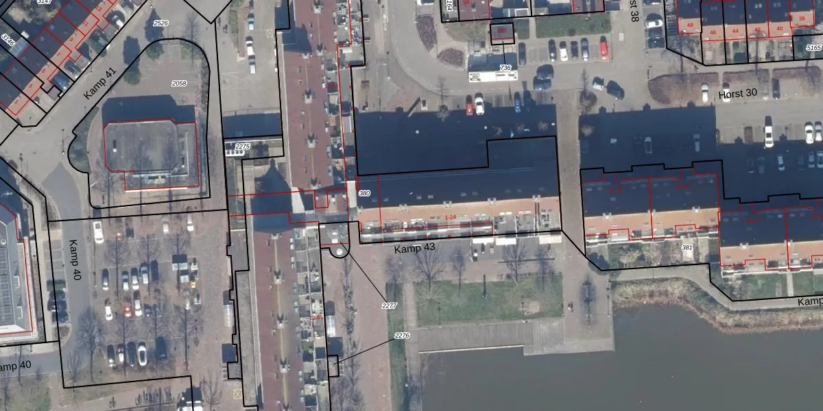 Kamp 43 22 is gelegen op kadastraal perceel LLS00P380. Deze kadastrale aanduiding is uniek en wordt gebruikt door het Kadaster om eigendomsrechten en andere zakelijke rechten vast te leggen. Het perceel maakt onderdeel uit van de kadastrale gemeente Lelystad.