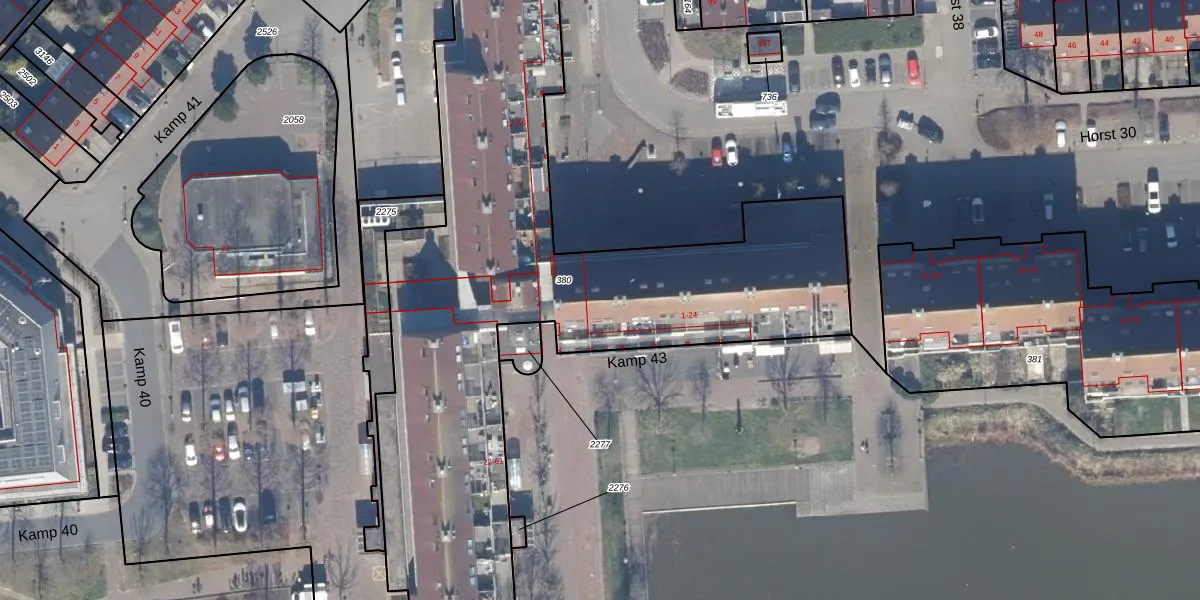 Kamp 43 23 is gelegen op kadastraal perceel LLS00P380. Deze kadastrale aanduiding is uniek en wordt gebruikt door het Kadaster om eigendomsrechten en andere zakelijke rechten vast te leggen. Het perceel maakt onderdeel uit van de kadastrale gemeente Lelystad.