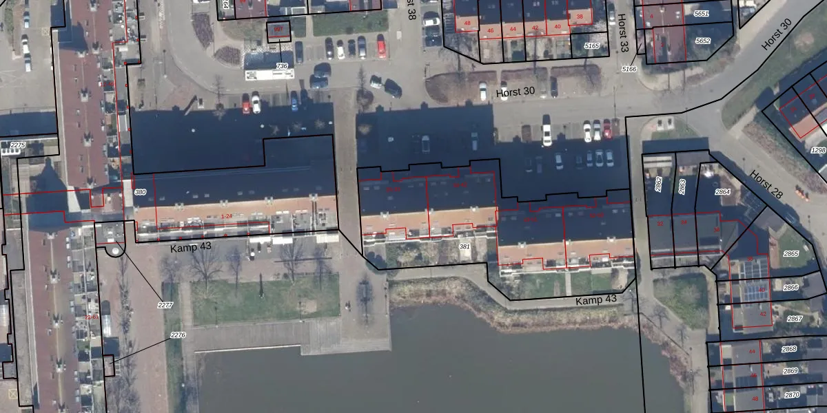 Kamp 43 28 is gelegen op kadastraal perceel LLS00P381. Deze kadastrale aanduiding is uniek en wordt gebruikt door het Kadaster om eigendomsrechten en andere zakelijke rechten vast te leggen. Het perceel maakt onderdeel uit van de kadastrale gemeente Lelystad.