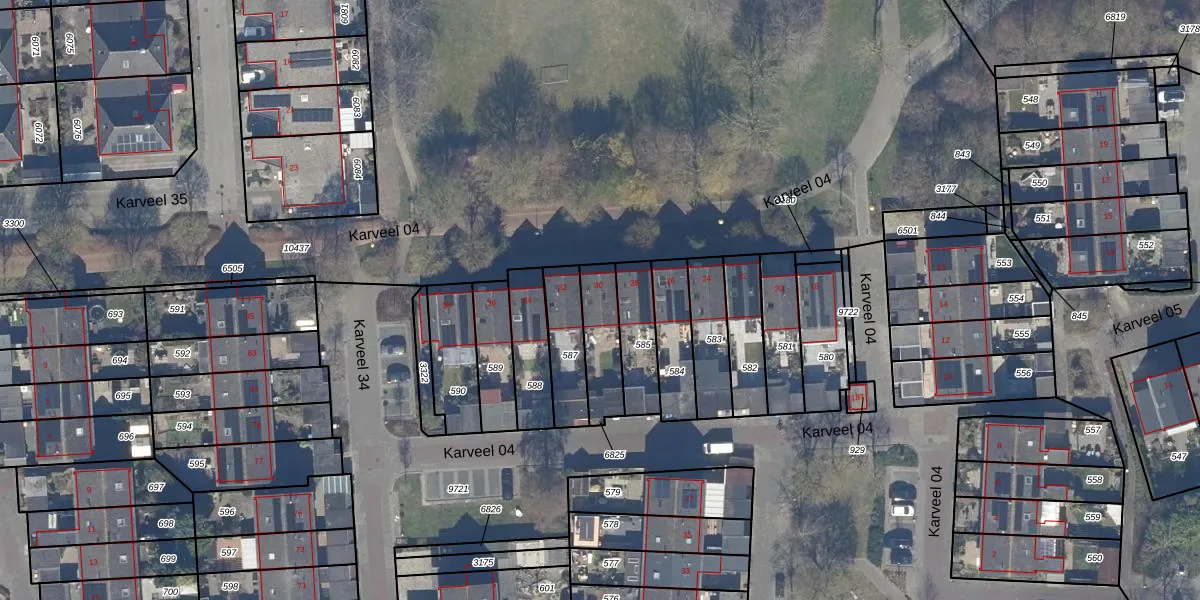 Het perceel waarop Karveel 04 30 staat heeft een oppervlakte van 156 m². Dit is een middelgroot perceel. De perceeloppervlakte wordt geregistreerd door het Kadaster. Gedetailleerde informatie over de maten van dit perceel kunt u vinden in het rapport Kadastrale kaart met maatvoering van Karveel 04 30.