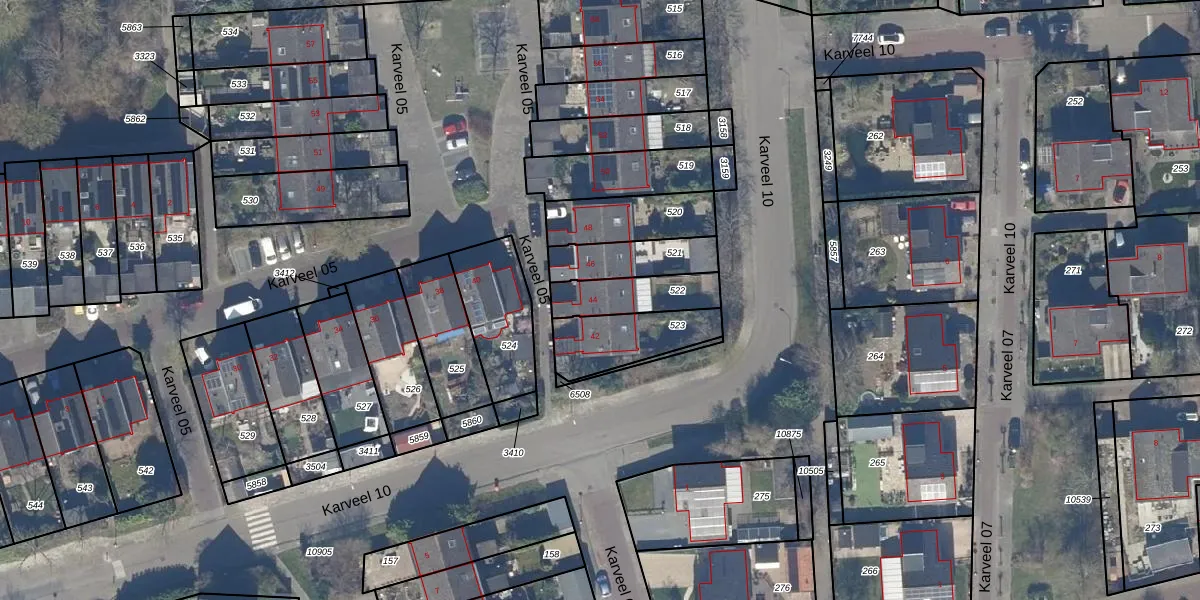 Het perceel waarop Karveel 05 44 staat heeft een oppervlakte van 169 m². Dit is een middelgroot perceel. De perceeloppervlakte wordt geregistreerd door het Kadaster. Gedetailleerde informatie over de maten van dit perceel kunt u vinden in het rapport Kadastrale kaart met maatvoering van Karveel 05 44.