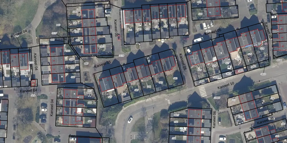 Karveel 05 5 is gelegen op kadastraal perceel LLS00M544. Deze kadastrale aanduiding is uniek en wordt gebruikt door het Kadaster om eigendomsrechten en andere zakelijke rechten vast te leggen. Het perceel maakt onderdeel uit van de kadastrale gemeente Lelystad.