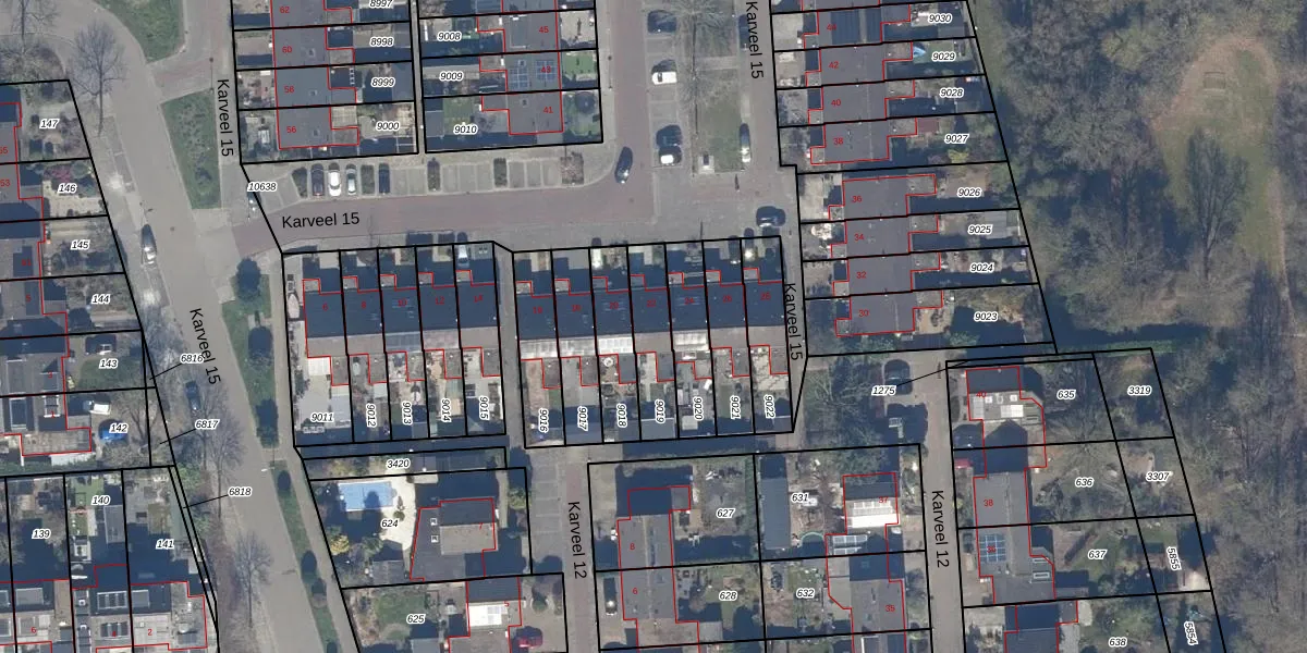 Het perceel waarop Karveel 15 22 staat heeft een oppervlakte van 174 m². Dit is een middelgroot perceel. De perceeloppervlakte wordt geregistreerd door het Kadaster. Gedetailleerde informatie over de maten van dit perceel kunt u vinden in het rapport Kadastrale kaart met maatvoering van Karveel 15 22.