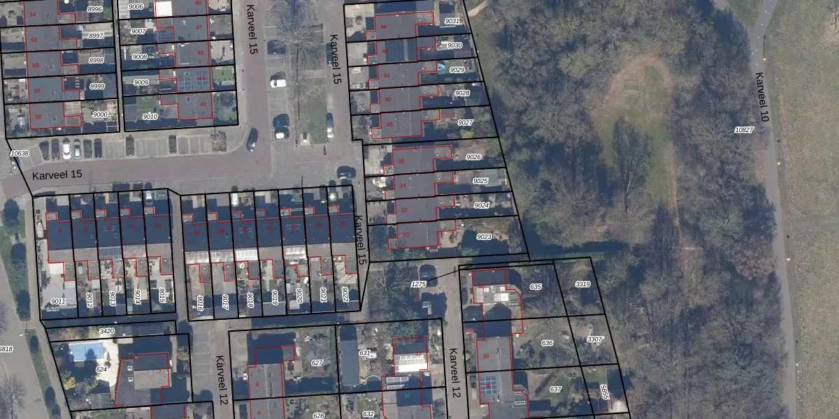 Het perceel waarop Karveel 15 32 staat heeft een oppervlakte van 205 m². Dit is een middelgroot perceel. De perceeloppervlakte wordt geregistreerd door het Kadaster. Gedetailleerde informatie over de maten van dit perceel kunt u vinden in het rapport Kadastrale kaart met maatvoering van Karveel 15 32.