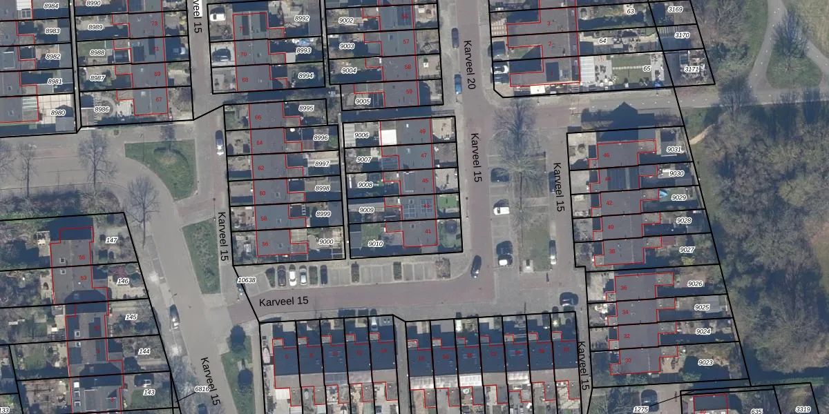 Het perceel waarop Karveel 15 43 staat heeft een oppervlakte van 165 m². Dit is een middelgroot perceel. De perceeloppervlakte wordt geregistreerd door het Kadaster. Gedetailleerde informatie over de maten van dit perceel kunt u vinden in het rapport Kadastrale kaart met maatvoering van Karveel 15 43.