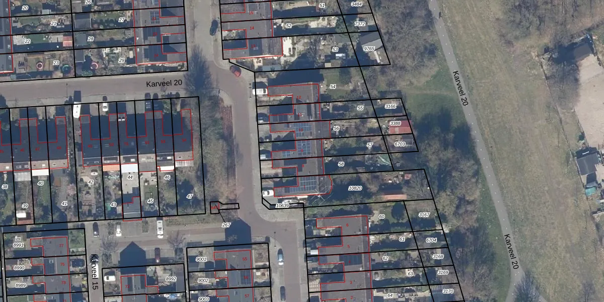 Karveel 20 9 is gelegen op kadastraal perceel LLS00M57. Deze kadastrale aanduiding is uniek en wordt gebruikt door het Kadaster om eigendomsrechten en andere zakelijke rechten vast te leggen. Het perceel maakt onderdeel uit van de kadastrale gemeente Lelystad.