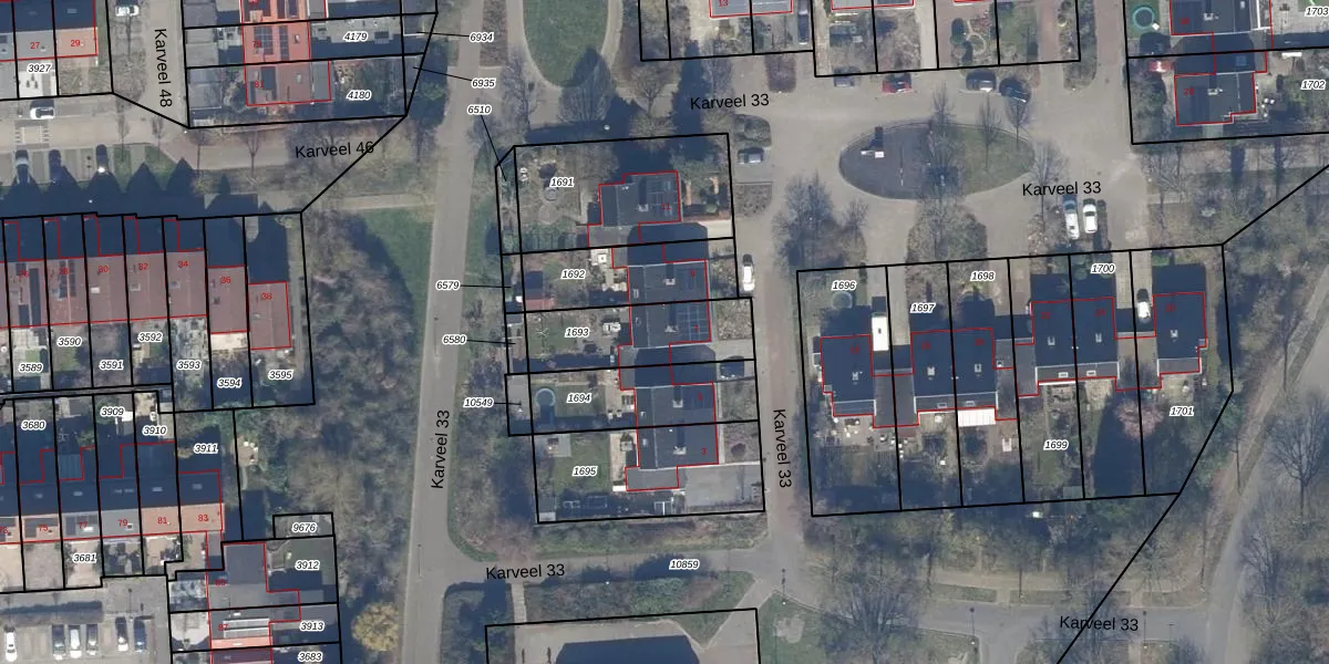 Het perceel waarop Karveel 33 7 staat heeft een oppervlakte van 317 m². Dit is een groot perceel. De perceeloppervlakte wordt geregistreerd door het Kadaster. Gedetailleerde informatie over de maten van dit perceel kunt u vinden in het rapport Kadastrale kaart met maatvoering van Karveel 33 7.