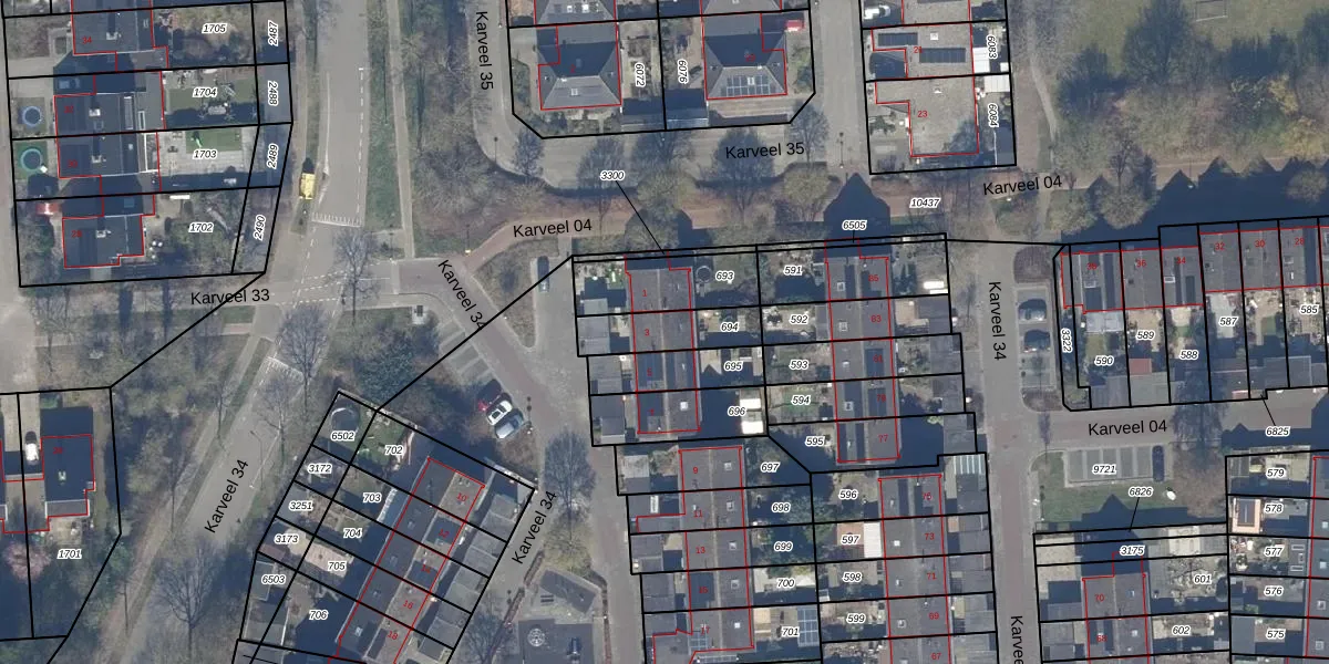 Gebruik de zoekbalk of klik op een perceel voor informatie over de adressen binnen dit perceel.