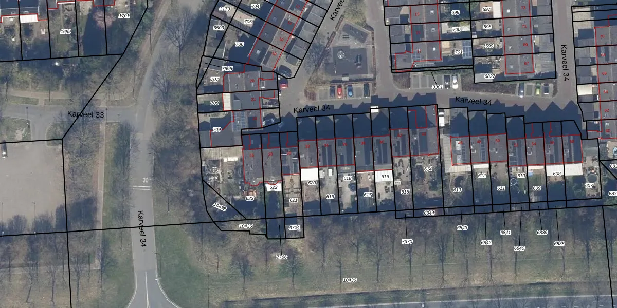 Karveel 34 32 is gelegen op kadastraal perceel LLS00M620. Deze kadastrale aanduiding is uniek en wordt gebruikt door het Kadaster om eigendomsrechten en andere zakelijke rechten vast te leggen. Het perceel maakt onderdeel uit van de kadastrale gemeente Lelystad.