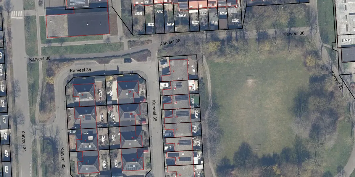 Gebruik de zoekbalk of klik op een perceel voor informatie over de adressen binnen dit perceel.