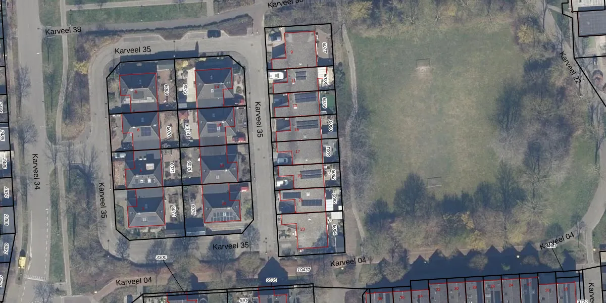 Gebruik de zoekbalk of klik op een perceel voor informatie over de adressen binnen dit perceel.