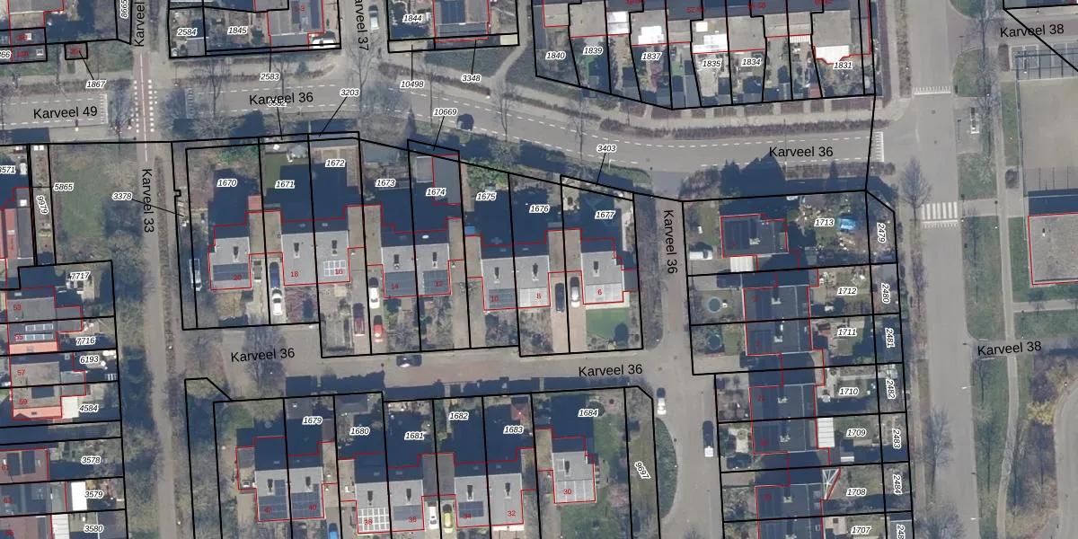 Het perceel waarop Karveel 36 8 staat heeft een oppervlakte van 302 m². Dit is een groot perceel. De perceeloppervlakte wordt geregistreerd door het Kadaster. Gedetailleerde informatie over de maten van dit perceel kunt u vinden in het rapport Kadastrale kaart met maatvoering van Karveel 36 8.