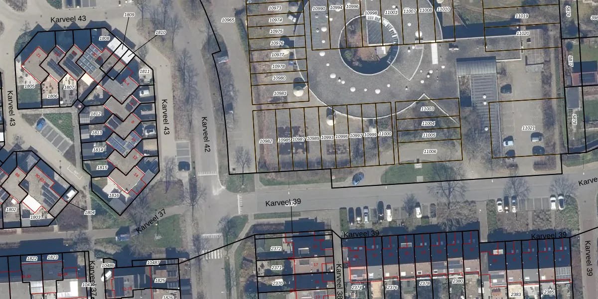 Gebruik de zoekbalk of klik op een perceel voor informatie over de adressen binnen dit perceel.