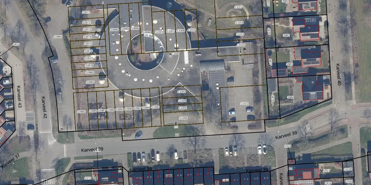 Karveel 39 67 is gelegen op kadastraal perceel LLS00M11003. Deze kadastrale aanduiding is uniek en wordt gebruikt door het Kadaster om eigendomsrechten en andere zakelijke rechten vast te leggen. Het perceel maakt onderdeel uit van de kadastrale gemeente Lelystad.
