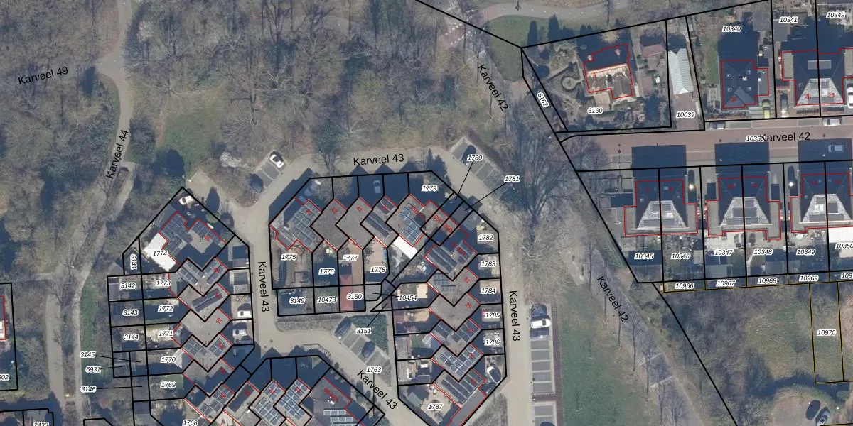 Het perceel waarop Karveel 43 35-D staat heeft een oppervlakte van 181 m². Dit is een middelgroot perceel. De perceeloppervlakte wordt geregistreerd door het Kadaster. Gedetailleerde informatie over de maten van dit perceel kunt u vinden in het rapport Kadastrale kaart met maatvoering van Karveel 43 35-D.