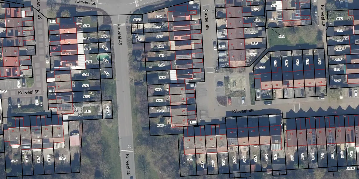 Gebruik de zoekbalk of klik op een perceel voor informatie over de adressen binnen dit perceel.