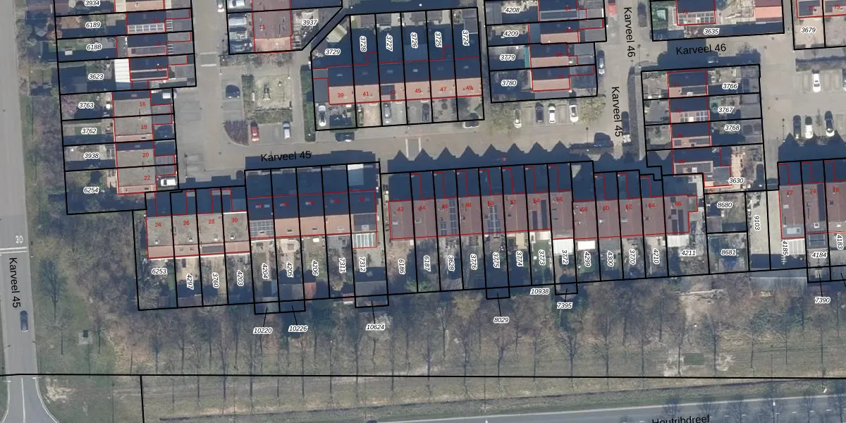 Gebruik de zoekbalk of klik op een perceel voor informatie over de adressen binnen dit perceel.