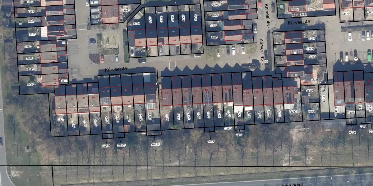 Gebruik de zoekbalk of klik op een perceel voor informatie over de adressen binnen dit perceel.