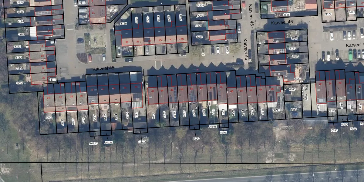 Het perceel waarop Karveel 45 48 staat heeft een oppervlakte van 154 m². Dit is een middelgroot perceel. De perceeloppervlakte wordt geregistreerd door het Kadaster. Gedetailleerde informatie over de maten van dit perceel kunt u vinden in het rapport Kadastrale kaart met maatvoering van Karveel 45 48.