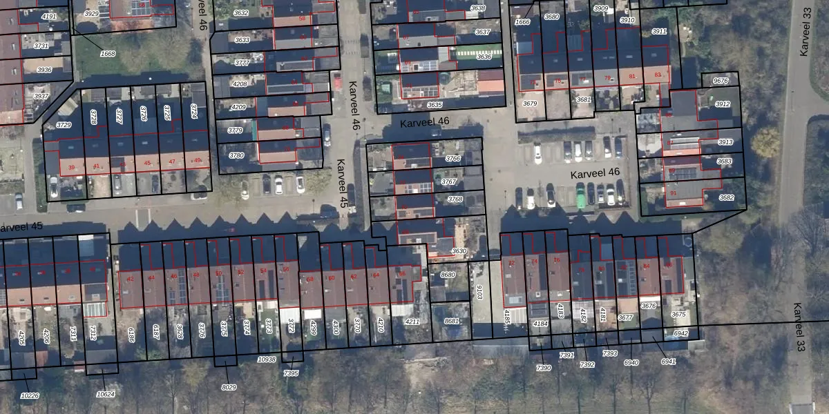 Gebruik de zoekbalk of klik op een perceel voor informatie over de adressen binnen dit perceel.