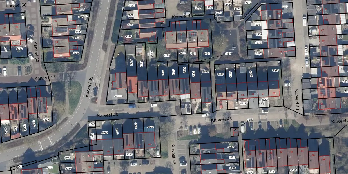 Het perceel waarop Karveel 46 11 staat heeft een oppervlakte van 137 m². Dit is een middelgroot perceel. De perceeloppervlakte wordt geregistreerd door het Kadaster. Gedetailleerde informatie over de maten van dit perceel kunt u vinden in het rapport Kadastrale kaart met maatvoering van Karveel 46 11.