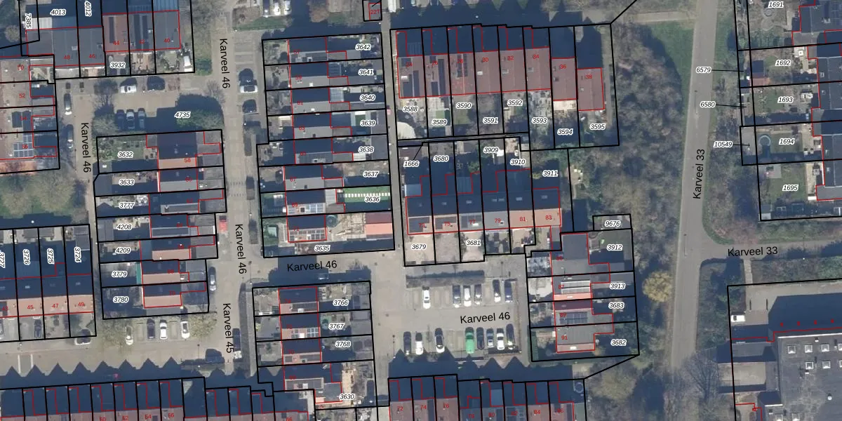 Het perceel waarop Karveel 46 73 staat heeft een oppervlakte van 209 m². Dit is een middelgroot perceel. De perceeloppervlakte wordt geregistreerd door het Kadaster. Gedetailleerde informatie over de maten van dit perceel kunt u vinden in het rapport Kadastrale kaart met maatvoering van Karveel 46 73.