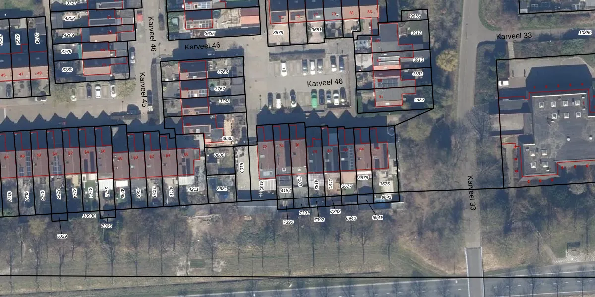 Het perceel waarop Karveel 46 76 staat heeft een oppervlakte van 136 m². Dit is een middelgroot perceel. De perceeloppervlakte wordt geregistreerd door het Kadaster. Gedetailleerde informatie over de maten van dit perceel kunt u vinden in het rapport Kadastrale kaart met maatvoering van Karveel 46 76.