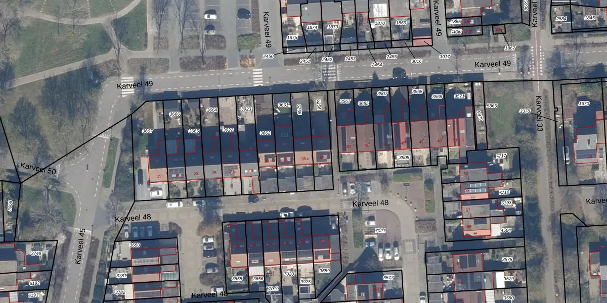 Gebruik de zoekbalk of klik op een perceel voor informatie over de adressen binnen dit perceel.