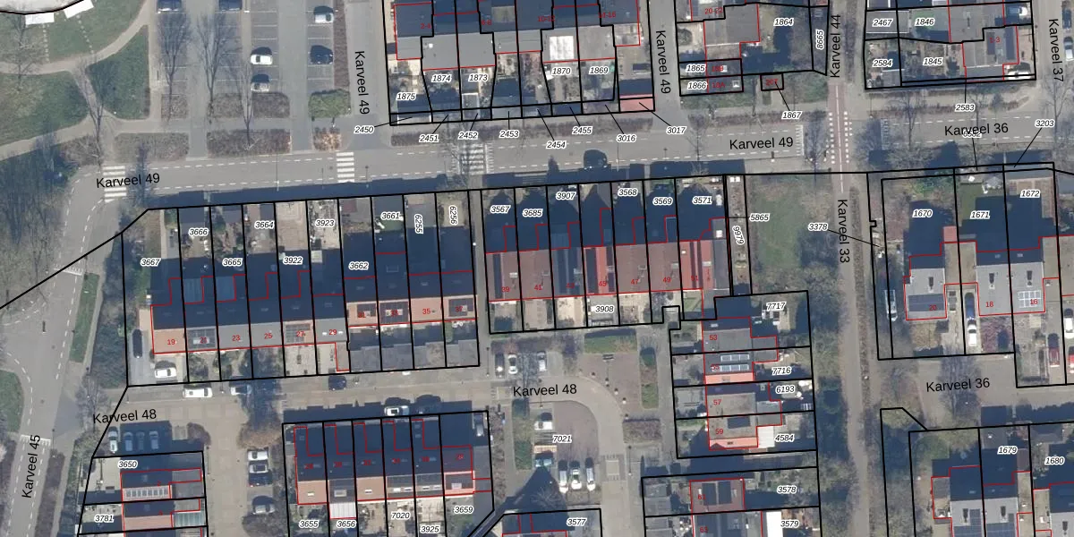 Het perceel waarop Karveel 48 41 staat heeft een oppervlakte van 162 m². Dit is een middelgroot perceel. De perceeloppervlakte wordt geregistreerd door het Kadaster. Gedetailleerde informatie over de maten van dit perceel kunt u vinden in het rapport Kadastrale kaart met maatvoering van Karveel 48 41.
