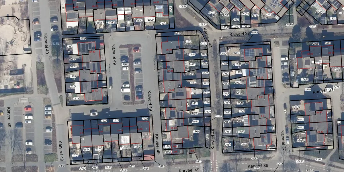 Gebruik de zoekbalk of klik op een perceel voor informatie over de adressen binnen dit perceel.
