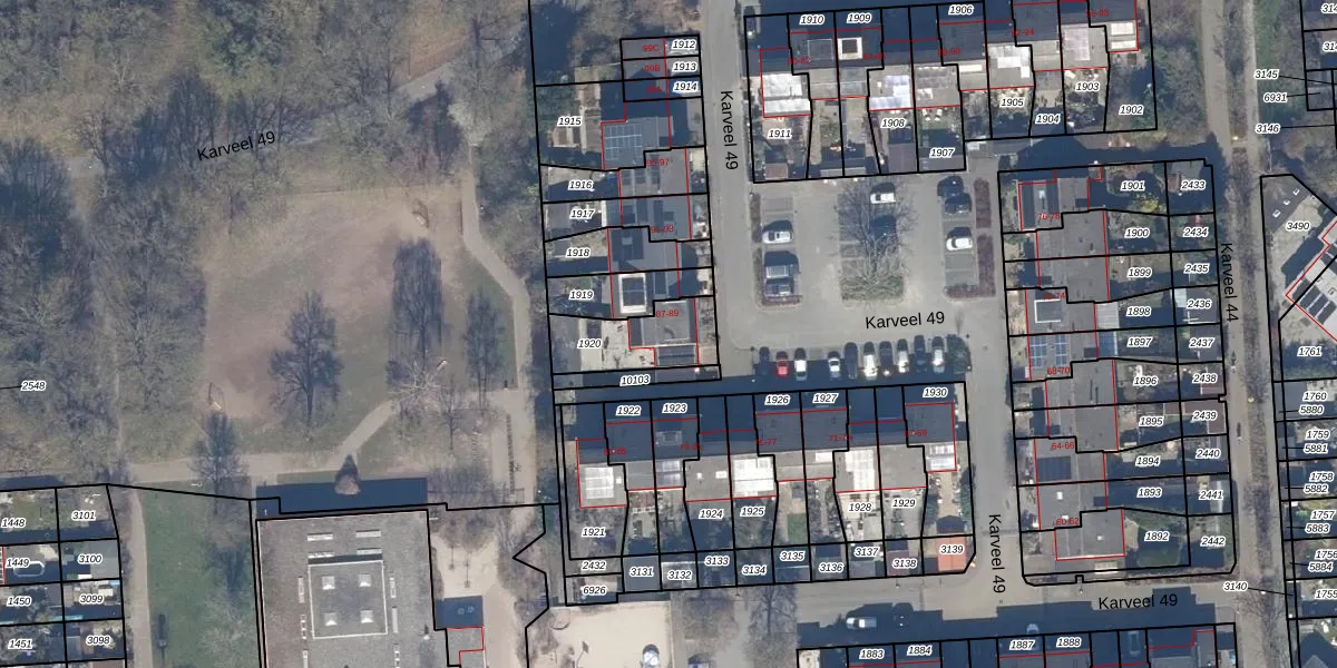 Het perceel waarop Karveel 49 87 staat heeft een oppervlakte van 223 m². Dit is een middelgroot perceel. De perceeloppervlakte wordt geregistreerd door het Kadaster. Gedetailleerde informatie over de maten van dit perceel kunt u vinden in het rapport Kadastrale kaart met maatvoering van Karveel 49 87.