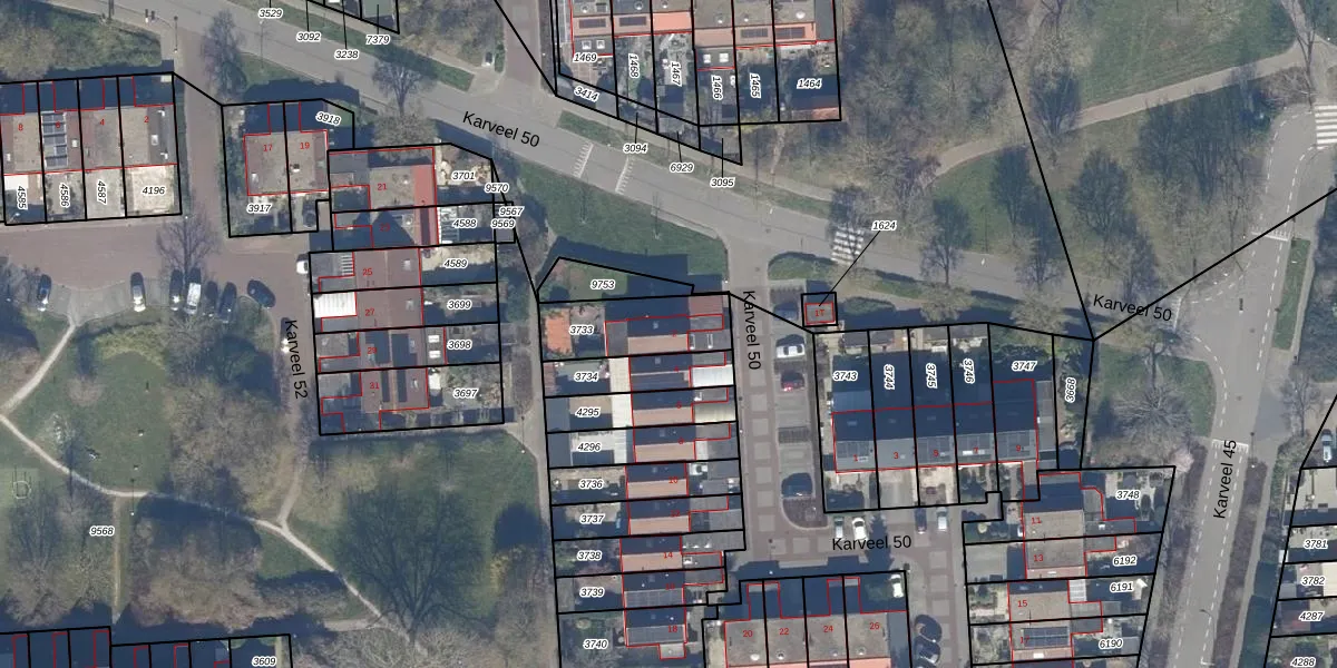 Karveel 50 2 is gelegen op kadastraal perceel LLS00M3733. Deze kadastrale aanduiding is uniek en wordt gebruikt door het Kadaster om eigendomsrechten en andere zakelijke rechten vast te leggen. Het perceel maakt onderdeel uit van de kadastrale gemeente Lelystad.
