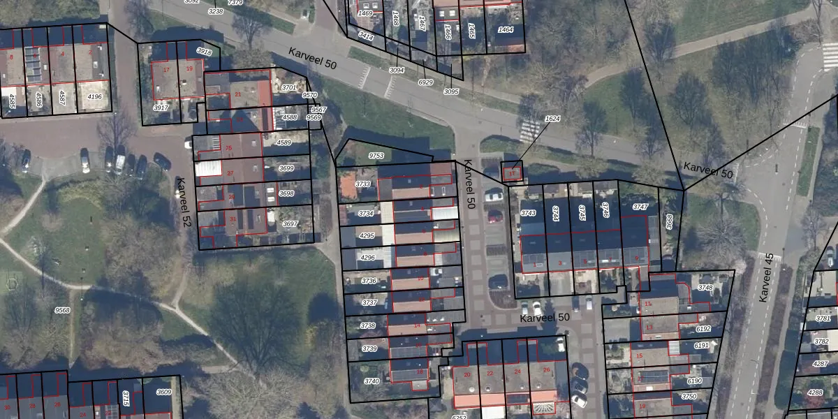 Gebruik de zoekbalk of klik op een perceel voor informatie over de adressen binnen dit perceel.
