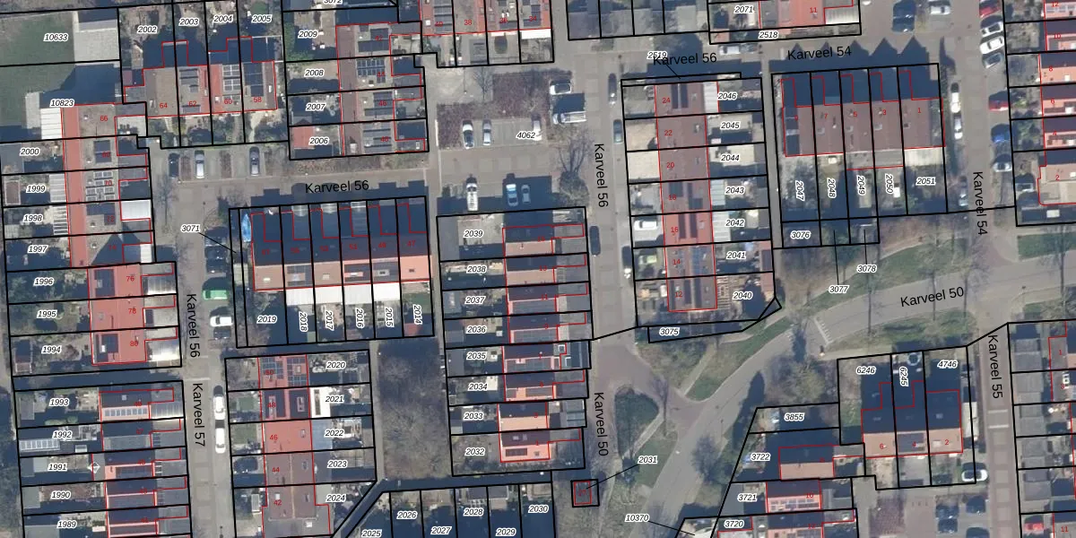 Gebruik de zoekbalk of klik op een perceel voor informatie over de adressen binnen dit perceel.