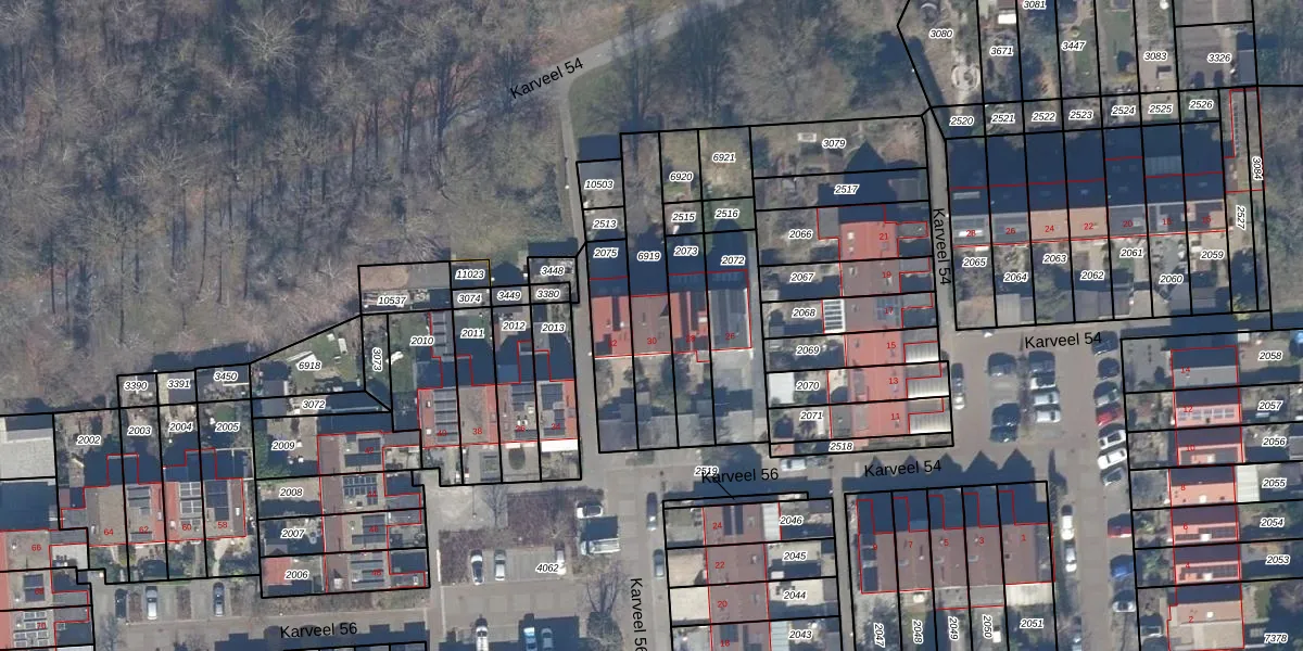 Het perceel waarop Karveel 56 30 staat heeft een oppervlakte van 292 m². Dit is een middelgroot perceel. De perceeloppervlakte wordt geregistreerd door het Kadaster. Gedetailleerde informatie over de maten van dit perceel kunt u vinden in het rapport Kadastrale kaart met maatvoering van Karveel 56 30.