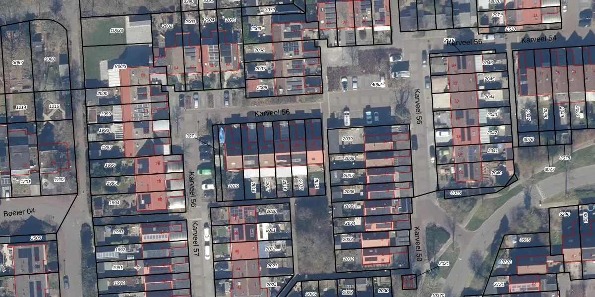 Karveel 56 49 is gelegen op kadastraal perceel LLS00M2015. Deze kadastrale aanduiding is uniek en wordt gebruikt door het Kadaster om eigendomsrechten en andere zakelijke rechten vast te leggen. Het perceel maakt onderdeel uit van de kadastrale gemeente Lelystad.