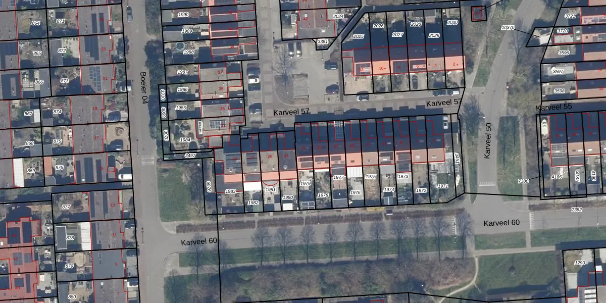 Het perceel waarop Karveel 57 21 staat heeft een oppervlakte van 155 m². Dit is een middelgroot perceel. De perceeloppervlakte wordt geregistreerd door het Kadaster. Gedetailleerde informatie over de maten van dit perceel kunt u vinden in het rapport Kadastrale kaart met maatvoering van Karveel 57 21.