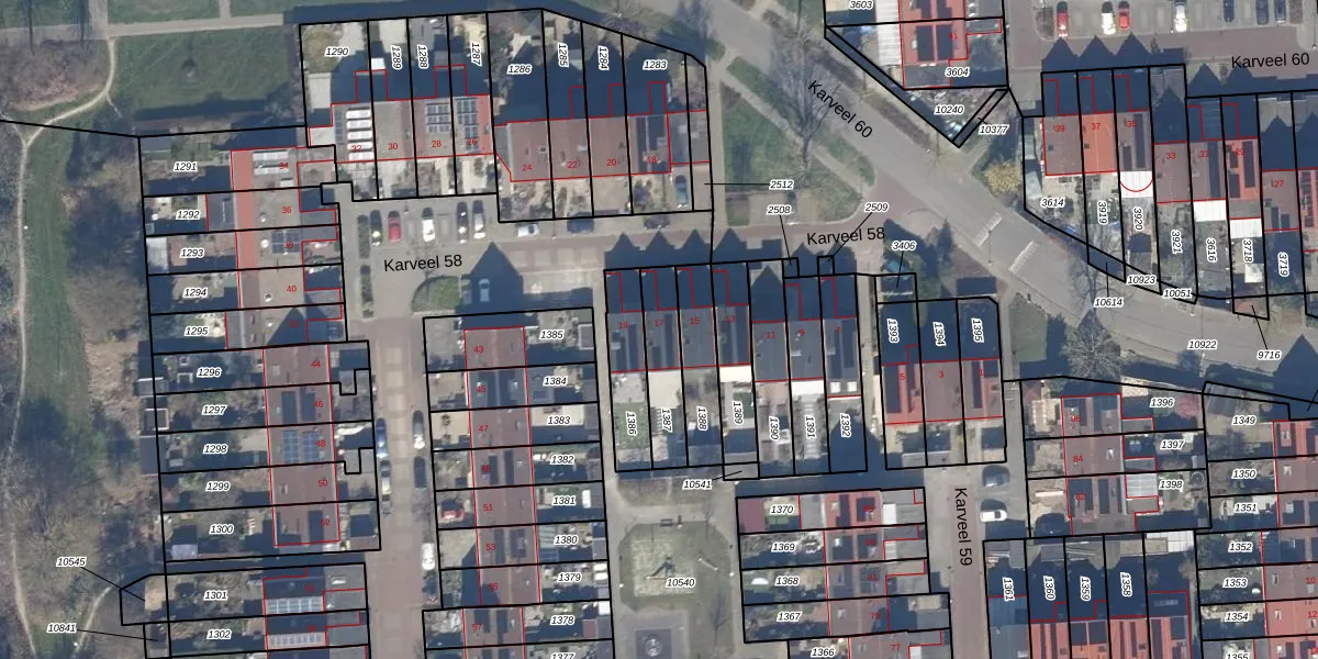 Gebruik de zoekbalk of klik op een perceel voor informatie over de adressen binnen dit perceel.