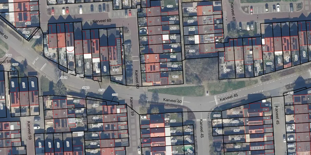 Gebruik de zoekbalk of klik op een perceel voor informatie over de adressen binnen dit perceel.