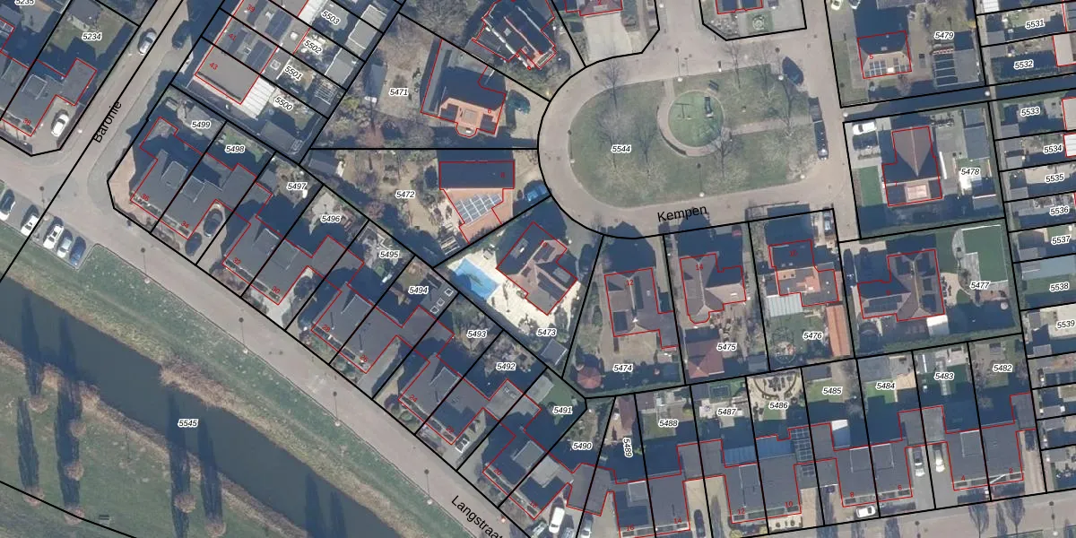 Het perceel waarop Kempen 10 staat heeft een oppervlakte van 541 m². Dit is een groot perceel. De perceeloppervlakte wordt geregistreerd door het Kadaster. Gedetailleerde informatie over de maten van dit perceel kunt u vinden in het rapport Kadastrale kaart met maatvoering van Kempen 10.