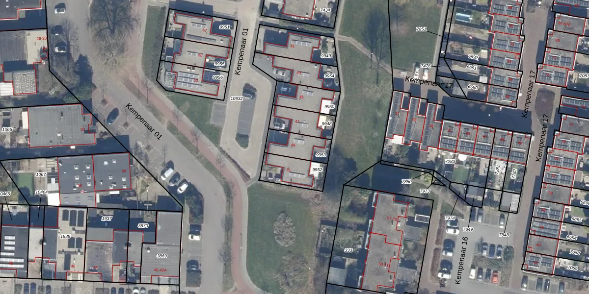 Het perceel waarop Kempenaar 01 49 staat heeft een oppervlakte van 180 m². Dit is een middelgroot perceel. De perceeloppervlakte wordt geregistreerd door het Kadaster. Gedetailleerde informatie over de maten van dit perceel kunt u vinden in het rapport Kadastrale kaart met maatvoering van Kempenaar 01 49.
