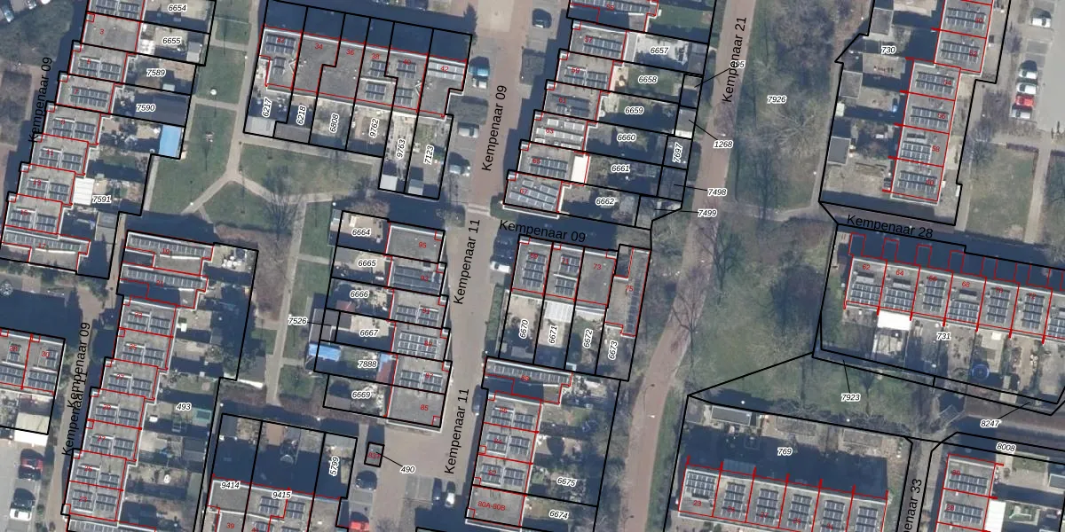 Gebruik de zoekbalk of klik op een perceel voor informatie over de adressen binnen dit perceel.