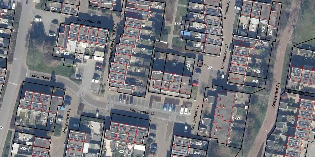 Het perceel waarop Kempenaar 11 39 staat heeft een oppervlakte van 197 m². Dit is een middelgroot perceel. De perceeloppervlakte wordt geregistreerd door het Kadaster. Gedetailleerde informatie over de maten van dit perceel kunt u vinden in het rapport Kadastrale kaart met maatvoering van Kempenaar 11 39.