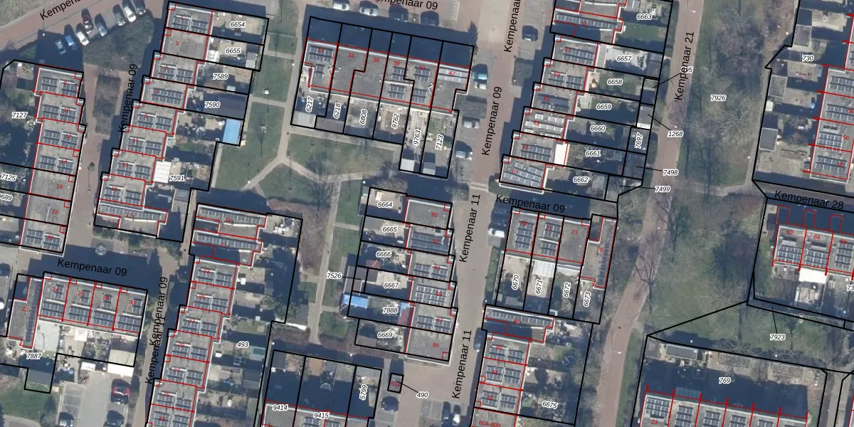 Gebruik de zoekbalk of klik op een perceel voor informatie over de adressen binnen dit perceel.