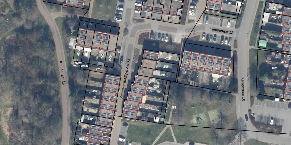 Gebruik de zoekbalk of klik op een perceel voor informatie over de adressen binnen dit perceel.